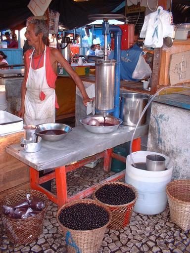 | Keywords: Banca de açai na rua Belem.jpg Banca de polpa de açaí na rua de Belém ao lado do Mercado do Ver-o-peso Açaí- Palmbeeren- Straßenverkauf in Belém am Ver-o-Peso-Markt Street vendor of açaí palm berry next to Ver-o-Peso market in Belém Pará Brazil own 2004-07-01 Decio Horita Yokota Street markets Açaí fruit |