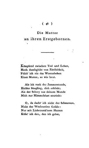 | Keywords: Bandemer Neue vermischte Gedichte 046.jpg Bandemer Neue vermischte Gedichte jpg 011 047 Neue vermischte Gedichte von Susanne von Bandemer http //books google com/books id pfoOAAAAIAAJ Google books 1802 Susanne von Bandemer 1751-1828 Author died more than 70 years ago - public domain PD-old-100 Neue vermischte Gedichte Bandemer 1802 texts |