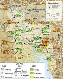 | Keywords: Bangladesh 1971 Liberation.jpg This map contains my estimates of the units involved in the Bangladesh liberation war If you know better please contact user Mike Young on the English Wikipedia and I will correct the Paintshop Pro image I built this from Background taken from Bangladesh LOC 1996 map jpg Own Mike Young BACKGROUND taken from http //hdl loc gov/loc gmd/g7645 ct001002 http //hdl loc gov/loc gmd/g7645 ct001002 PD-USGov ADDITIONS Maps of the history of Bangladesh | ||||