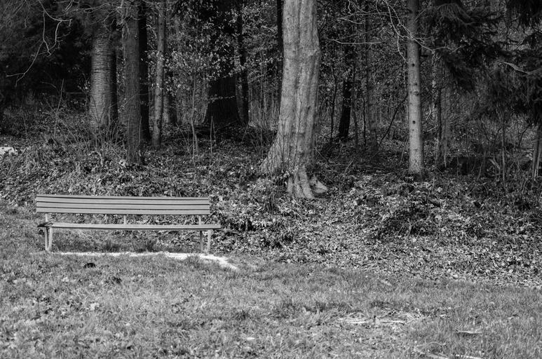 Keywords: bank forest meadow bench silent nature rest out trees walk recovery