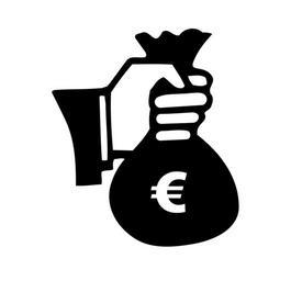 Keywords: bank robbery money bag hand coins symbol icon black white characters steal euro currency
