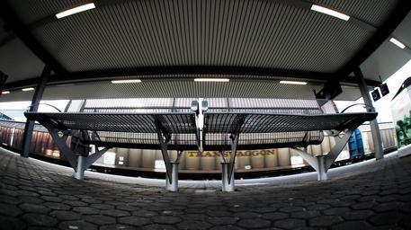 Keywords: bank seat platform wait steel grid metal bench metal railway station