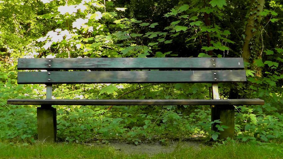Keywords: bank sit park bench rest summer forest recovery forest path green break