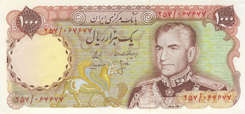 | Keywords: Banknote of second Pahlavi - 1000 rials (front).jpg en Banknote of second Pahlavi - 1000 rials front banknote of central bank of Iran 2012-02-02 own Iran Persian Gulf Forever cc-zero Uploaded with UploadWizard Banknotes of Iran Mohammad Reza Pahlavi era 100 Toman 1000 Rial banknotes |