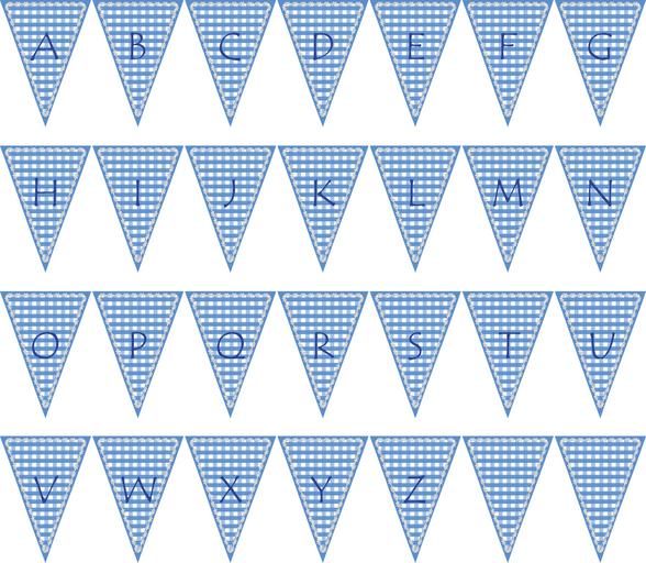 Keywords: banner bunting gingham flag check blue alphabet letter triangle party white fun summer spring holiday happy cross stitch thread material fabric embroidery