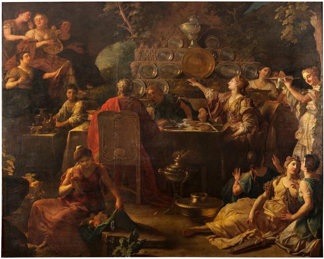 | Keywords: Banquete de Telémaco y Mentor (Museo del Prado).jpg La obra representa a Telémaco hijo de Odiseo en un banquete junto a Méntor Siglo XVIII oil on canvas Size cm 316 6 260 5 Institution Museo del Prado Depositado en la Embajada de España en París https //www museodelprado es/coleccion/obra-de-arte/banquete-de-telemaco-y-mentor/ae61575c-4550-4f2b-8970-c8622b9c0950 accession number P06204 https //content cdnprado net/imagenes/Documentos/imgsem/ae/ae61/ae61575c-4550-4f2b-8970-c8622b9c0950/edf30d47-0ac1-4c4c-8e45-7841ae803bb1 jpg PD-old-100 Paintings of Telemachus Mentor Paintings by Michel-Ange Houasse in the Prado Museum 18th-century paintings in the Prado Museum Spanish Embassy Paris |