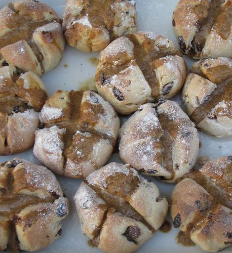 Keywords: Ban'ses Crouaîsies - Hot Cross Buns 3.jpg Des ban'ses crouaîsies grées l'Vendrédi B'nêt 2012 Hot cross buns made on Good Friday 2012 own photo 2012-04-06 16 42 26 Man vyi Breads of Jersey Easter 2012 Hot cross buns