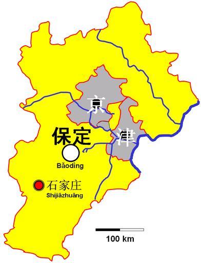 Keywords: Baoding in Hebei.png position of Baoding in China<br> Source own work<br> Date December 2005 <br> Author --Immanuel Giel 13 27 15 December 2005 UTC <br> Other versions none<br> de Baoding en Baoding fr Baoding 2005-12-15 own assumed Immanuel Giel Locator maps of cities in China |