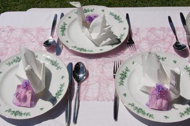 Keywords: baptism table decorations celebration plate napkin cutlery dove table cover eat board decoration festival gedeckter table garden in the free