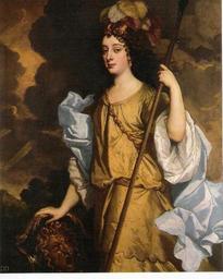 | Keywords: Barbara Palmer, 1st Duchess of Cleveland (November 27 [O.S. November 17] 1640[1] – October 9, 1709) was an English courtesan and perhaps the most notorious of the many mistresses of Charles II of England. Born Barbara Villiers at the parish of St. Margaret's, Westminster, she was the only child of the 2nd Viscount Grandison, William Villiers (a half-nephew of the 1st Duke of Buckingham), and his wife, Mary Bayning, heiress of the 1st Viscount Bayning. On September 20, 1643, her father died in the English Civil War from a wound sustained at the Battle of Newbury while fighting for the Royalists. He had spent his considerable fortune on horses and ammunition for his Cavalier regiment; his widow and daughter were left in straitened circumstances. Shortly after Lord Grandison's death, Barbara's mother the Lady Mary remarried to Charles Villiers, Earl of Anglesea, a cousin of her late husband.[2] Upon the 1649 execution of King Charles I, the impoverished Villiers clan secretly transferred their loyalty to his son, Charles. Every year on May 29, the new King's birthday, young Barbara, along with her family, descended to the cellar of their home in total darkness and clandestinely drank to his health.[3] At that time, King Charles was wandering about the Continent, exiled and penniless. Tall, voluptuous, with masses of auburn hair, slanting, heavy-lidded blue-violet eyes, alabaster skin, and a sensuous, sulky mouth,[4] Barbara Villiers was considered to be one of the most beautiful Royalist women, but her lack of fortune left her with reduced marriage prospects. Her first serious romance was with Philip Stanhope, 2nd Earl of Chesterfield, but he was searching for a rich wife; he would wed Elizabeth Butler in 1660.[5] On 14 April 1659 she married Roger Palmer (later 1st Earl of Castlemaine) against his family's wishes; his father predicted that she would make him one of the most miserable men in the world. Palmer was a Roman Catholic. The two separated in 1662, following the birth of her first son. They remained married for his lifetime, but it is believed that Palmer did not father any of his wife's children. [1] She became King Charles's mistress in 1660, while still married to Palmer, and whilst Charles was still in exile at The Hague. The Palmers had joined the ambitious group of supplicants who sailed for Brussels at the end of 1659.[6] As a reward for her services, the King created her husband Baron Limerick and Earl of Castlemaine in 1661. Of her six children, five were acknowledged by Charles as his: 1. Lady Anne Palmer, later FitzRoy (1661-1722), probably daughter of Charles II, although some people believed she bore a resemblance to the Earl of Chesterfield. She later became the Countess of Sussex. 2. Charles Palmer, later FitzRoy (1662-1730), styled Lord Limerick and later Earl of Southampton, created Duke of Southampton (1675), later 2nd Duke of Cleveland (1709) 3. Henry FitzRoy (1663-1690), created Earl of Euston (1672) and Duke of Grafton (1675) 4. Charlotte FitzRoy (1664-1718), later Countess of Lichfield. She gave birth to twenty children. 5. George FitzRoy (1665-1716), created Earl of Northumberland (1674) and Duke of Northumberland (1683) 6. Barbara (Benedicta) FitzRoy (1672-1737) - Cleveland claimed that she was Charles' daughter, but she was probably the child of her mother's second cousin and lover, John Churchill, later Duke of Marlborough By 1662, Barbara, the King's mistress, had more influence at the court than his Queen, Catherine of Braganza. In point of fact, Barbara chose to give birth to their second child at Hampton Court Palace while he and the Queen were honeymooning.[7] In the summer of 1662 she was appointed Lady of the Bedchamber despite opposition from Queen Catherine and Edward Hyde, 1st Earl of Clarendon, one advisor to the King and a bitter enemy of Barbara's. Behind closed doors, Barbara and the Queen feuded constantly. Barbara's influence over the King waxed and waned. Her victory, of her appointment as Lady of the Bedchamber, was followed by rumours of an estrangement between her and the King, being the result of his infatuation with Frances Stuart. In December 1663, Barbara announced her conversion to Catholicism; historians disagree as to why she did so. Some believe it was an attempt to consolidate her position with the King, and some believe it was a way of strengthening her ties with her Catholic husband. In June 1670 Charles created her Baroness Nonsuch (being the owner of Nonsuch Palace). She was also, briefly, granted the ownership of Phoenix Park in Dublin as a present from the King. She was made Countess of Southampton and Duchess of Cleveland in her own right; however, no one at court was sure if this was an indication that she was being jettisoned by Charles, or whether this was a sign that she was even higher in his favours. The Dukedom was made with a special remainder which allowed it to be passed to her eldest son, Charles FitzRoy, despite him being illegitimate. Barbara was known for her dual nature. Diarist John Evelyn called her "the curse of the nation";[8] yet, others described her as great fun, keeping a good table and with a heart to match her famous temper. Lady Barbara took advantage of her influence over the King, using it to her own benefit. She would help herself to money from the Privy Purse and take bribes from the Spanish and the French. She was famously extravagant and promiscuous. She also meddled in politics, supporting the Second Dutch War (declared in February 1665), along with most of the court and Parliament.[9] But there are accounts of exceptional kindness from Barbara; once, after a scaffold had fallen onto a crowd of people at the theatre, she rushed to assist an injured child, and was the only court lady to have done so. While the King had taken other mistresses, the most notable being the actress Nell Gwynne, Barbara took other lovers too, including the acrobat Jacob Hall and her second cousin J