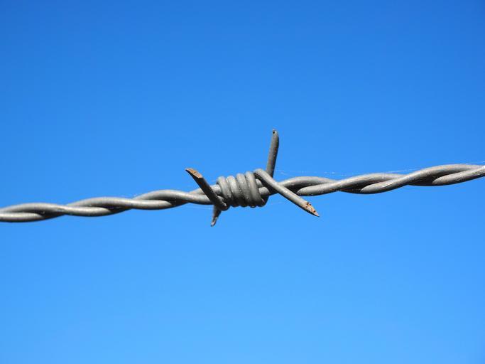 Keywords: barbed wire wire fenced metal fence security thorn demarcation defense limit barrier