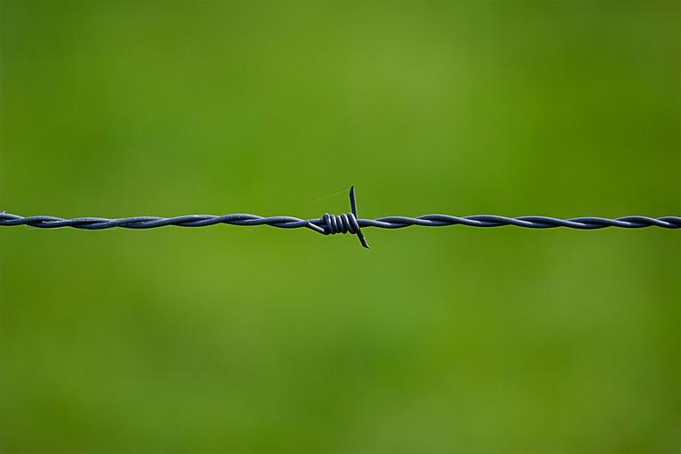 Keywords: barbed wire wire security thorn close fence green tiefenschärfe demarcation limit