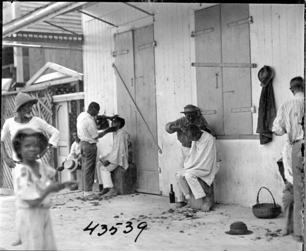 | Keywords: barber haircut stanley field expedition stanleyfieldexpedition british guiana britishguiana bror e. dahlgren broredahlgren john r. millar johnrmillar 1922 botany plant specimen collection plantspecimencollection guyana south america southamerica blackandwhite monochrome black and white Men, possibly barbers, and men getting haircuts and shave. 1922. Name of Expedition: Stanley Field Expedition to British Guiana Participants: Bror E. Dahlgren and John R. Millar Expedition Date: 1922 Purpose or Aims: Botany. Securing botanical exhibition material and studies for the plant reproductions in Department of Botany. 235 plaster molds, 427 economic specimens, 52 branches will serve as basis for plant reconstruction or reproductions of Cannonball tree, Clusia, Mucro, Cashew, Dillenia, Lagerstraemia, Willow Fig, Courida, Chocolate tree Location: Guyana, South America Digital Identifier: CSB43539 Learn more about The Field Museum's Library Photo Archives. Men, possibly barbers, and men getting haircuts and shave. 1922. Name of Expedition: Stanley Field Expedition to British Guiana Participants: Bror E. Dahlgren and John R. Millar Expedition Date: 1922 Purpose or Aims: Botany. Securing botanical exhibition material and studies for the plant reproductions in Department of Botany. 235 plaster molds, 427 economic specimens, 52 branches will serve as basis for plant reconstruction or reproductions of Cannonball tree, Clusia, Mucro, Cashew, Dillenia, Lagerstraemia, Willow Fig, Courida, Chocolate tree Location: Guyana, South America Digital Identifier: CSB43539 Learn more about The Field Museum's Library Photo Archives. |