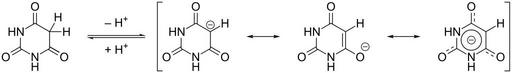 Keywords: Barbituric acid, acid reaction.svg validSVG Acid reaction of pyrimidine-2 4 6 1H 3H 5H -trione Own 2014-03-01 Emeldir <span class signature-talk >talk</span> PD-chem Barbituric acid Acid-base reactions