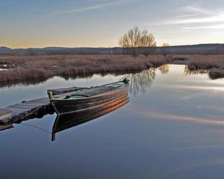 Keywords: barca lake backwards boat landscape nature sky water sunset soledad rowing pond blue