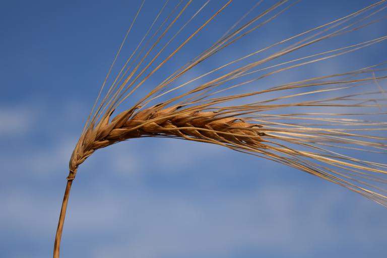 Keywords: barley ear cereals nature grain agriculture nourishing barley blue sky close cereal food