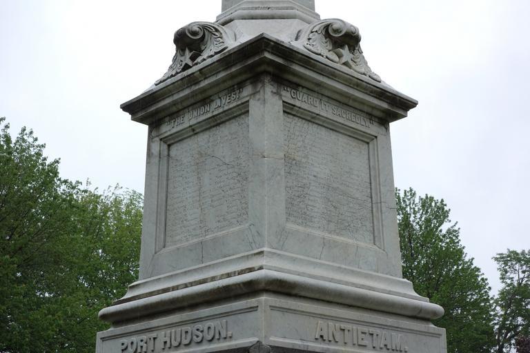 Keywords: Barre Civil War Monument - Barre, Massachusetts - DSC07268.JPG en Barre Civil War Monument - Barre Massachusetts USA Installed 1866 Sculptor unknown Smithsonian Control Number IAS 77000015 Inscription On south side of monument JOY FOR THE RETURNED; TEARS FOR THOSE THAT COME NOT AGAIN On lower south side of monument GETTYSBURG On west side of monument GUARD IT SACREDLY /ANTIETAM On north side of monument THE UNION LIVES /FORT HUDSON On east side of monument BEHOLD THE SACRIFICE /NEWBERN On south side of base ERECTED BY THE TOWN/1866 unsigned This monument was originally erected in Haverhill Massachusetts as a monument to Hannah Duston When her home was attacked by Native Americans Hanna Duston and a friend were captured while Mr Duston and their twelve children got away safely Some weeks later Hannah and her friend were able to escape by killing ten of their captors In 1855 the Duston Monument Association was formed to solicit funds to erect a monument on the site of the Duston home; however a dispute as to whether the site acquired was actually where the Duston home stood led contributors to withdraw their support When litigation followed the monument was sold to a Woburn man Later the monument's inscription to Duston was removed and the monument was eventually sold to the Town of Barre for 6 000 in Oct 1865 For additional information the Barre Gazette Nov 17 1866 and the files of the Barre Historical Society IAS files contain a copy of the Massachusetts Historical Commission Form C - Monuments questionnaire dated Oct 13 1972 This artwork is in the public domain because the artist s died more than 70 years ago 2013-06-07 13 36 24 own Daderot cc-zero Barre Civil War Monument Uploaded with UploadWizard |