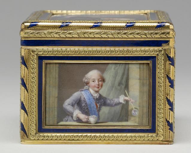 | Keywords: Barriere - Snuffbox with the Family of Louis XV - Walters 57136 - Left Side.jpg The box is decorated with images of the children of Louis XV and Queen Marie Leszczynska Louise-Elisabeth and Marie Adelaide on the cover ; Victoireand Sophie on the base ; Louis the dauphin with a kite on the front ; Louise-Marie holding a battledore and shuttlecock for a racquet game on the left end ; and Philippe duke of Anjou blowing bubbles on the right end As Philippe died in 1733 the images must be based on earlier portraits between 1761 1762 gold painted enamel cm 5 6 3 accession number 57 136 22517 ZoƩ Victoire Talon Comtesse du Cayla 1785-1852 Paris Maurice Kann Paris Charles J Wertheimer Sale Christie's London May 9 1912 no 14 Jacques Seligmann Paris by purchase Henry Walters Baltimore after 1912 by purchase Walters Art Museum Henry Walters Acquired by Henry Walters after 1912 Objects of Vertu Precious Works of the Eighteenth Century The Walters Art Gallery Baltimore 1984 Vive la France French Treasures from the Middle Ages to Monet The Walters Art Gallery Baltimore 1999-2000 place of origin France Walters Art Museum license Barriere Jeweller J J Dailly Snuffboxs in the Walters Art Museum Portrait miniatures in the Walters Art Museum 18th-century portrait paintings in the Walters Art Museum 1761c 18th-century portrait paintings of boys at half length 1761c House of Bourbon 1733 1730 births 1733 deaths 18th-century people of France 1733 Burials at the Basilica of St Denis 1733 Dukes of Anjou 1733 Powdered wigs in art 1733 Sash of the Order of the Holy Spirit in portrait paintings 1733 Soap bubbles in art 1760s portrait paintings Vive la France French Treasures from the Middle Ages to Monet |