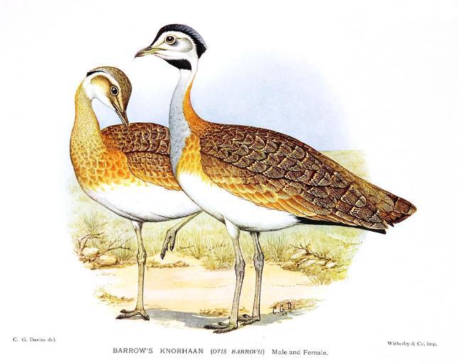 | Keywords: BarrowsKorhaanDavies.jpg Eupodotis senegalensis http //archive org/stream/cu31924001576226 page/n40/mode/1up Horsbrugh Boyd 1912 The game-birds and water-fowl of South Africa/ Witherby Co London 1912 Creator Claude Gibney Finch-Davies PD-old-auto-1923 1920 Eupodotis senegalensis Claude Gibney Finch-Davies The game-birds and water-fowl of South Africa 1912 |