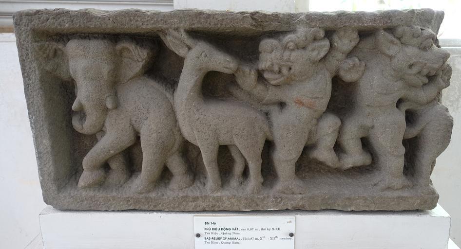 | Keywords: Bas-relief of animals, Tra Kieu, 10th-12th century, Quang Nam - Museum of Cham Sculpture - Danang, Vietnam - DSC01860.JPG en Cham sculpture at the Museum of Cham Sculpture Da Nang Vietnam This artwork is in the public domain because the artist died more than 70 years ago Photography was permitted in the museum without restriction 2014-07-29 01 35 12 own Daderot cc-zero Trà Kiệu sculptures at the Museum of Cham Sculpture Uploaded with UploadWizard | ||||