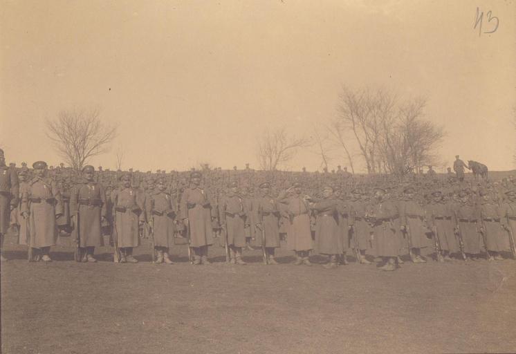 | Keywords: BASA-237K-1-355-43-Serbo-Bulgarian War, World War I, 1915.jpg  Пъ ви пехотен софийски полк в С ъбската кампания по в еме на Пъ вата световна война Част от албума пода ен на обичания ни главнокомандващ г-н гене ал-майо Жеков от офице ите на полка 1915 г 1st Sofia Infantry Regiment in the Serbian campaign World War I Album presented to our beloved commander in chief major-general Nikola Zhekov by the officers of the regiment 1915 1-й софийский пехотный полк в Се бской кампании Пе вой ми овой войны Альбом пода ок обичному нашему главнокомандующему г-ну гене ал-майо у Жекову офице ам полка 1915 г 1915 author ЦДА 237K  икола Жеков 1 355 43 credit line exhibition history BASA Спасими <span class signature-talk >talk</span> 2012-12-17 other versions Anonymous-EU Bulgaria in World War I World War I in 1915 World War I forces of Bulgaria 1st Sofia Infantry Regiment |