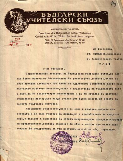 | Keywords: BASA-984K-1-10-110.JPG Позд авително писмо до Стоил Стоилов от Бълга ския учителски съюз Letter of Stoil Stoilov 1930-02-25 author ЦДА 984K Стоил Стоилов 1 10 110 credit line exhibition history BASA Спасими <span class signature-talk >talk</span> 2014-04-17 other versions Anonymous-EU Letters of Stoil Stoilov |