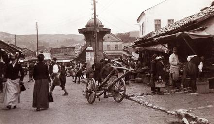 | Keywords: Bascarsija. Fortepan 76316.jpg hu Bascarsija Location Bosnia and Herzegovina Sarajevo Tags ad pillar cart street view genre painting bazaar Title Bascarsija http //www fortepan hu/_photo/download/fortepan_76316 jpg 1903 Fortepan 76316 http //www fortepan hu/_photo/download/fortepan_76316 jpg http //www fortepan hu/ lang en img 76316 Unknown The release at fortepan hu is CC-BY-SA-3 0 As the photographer is unknown or pseudonymous and the photograph is Age 1903 01 01 years old it is considered public domain both in the country of publication Hungary and the USA where Wikimedia Commons is hosted See Fortepan HU for more information on related uploads 43 51 33 71 N 18 25 51 63 E heading NNE PD-anon-70-EU PD-1923 PD-1923 DEFAULTSORT Fortepan 076316 1903 photographs Images uploaded by Fæ Sebilj Baščaršija main square |