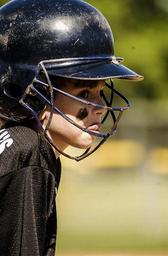Keywords: baseball player helmet youth face mask focus concentration sport uniform athlete young boy american action kid watching