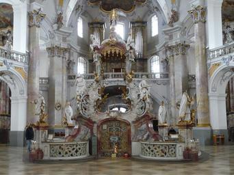 | Keywords: Basilika Vierzehnheiligen 007.JPG Gnadenaltar Die Basilika Vierzehnheiligen bei Bad Staffelstein im Landkreis Lichtenfels ist eine Wallfahrtskirchen in Oberfranken <br>Another view of the Altar of the Vierzehnheiligen represented by the fourteen holy helpers Basilica of the Fourteen Holy Helpers Bad Staffelstein near Bamberg in Bavaria Germany Own Mattana 2009-04-16 Images by Mattana-Bamberg Germany Baroque altars in Basilika Vierzehnheiligen | ||||