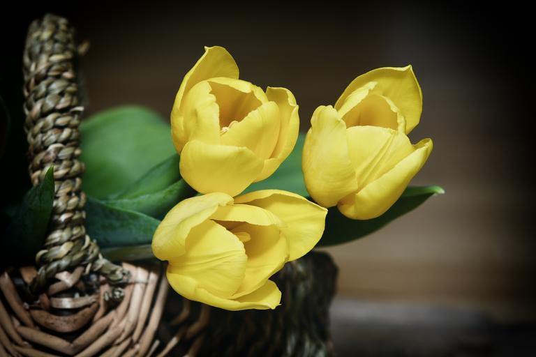 Keywords: basket flowers tulips yellow cut flowers close spring yellow flowers