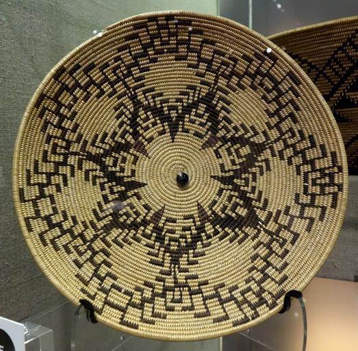 Keywords: Basket plate, Mollie Foreman, Maidu, c. 1910 - Oakland Museum of California - DSC05039.JPG en Exhibit in the Oakland Museum of California Oakland California USA This work is in the public domain because its maker died more than 70 years ago Photography was permitted in the museum without restriction 2013-11-15 16 32 00 own Daderot other versions cc-zero Native American baskets in the Oakland Museum of California Uploaded with UploadWizard Maidu |
