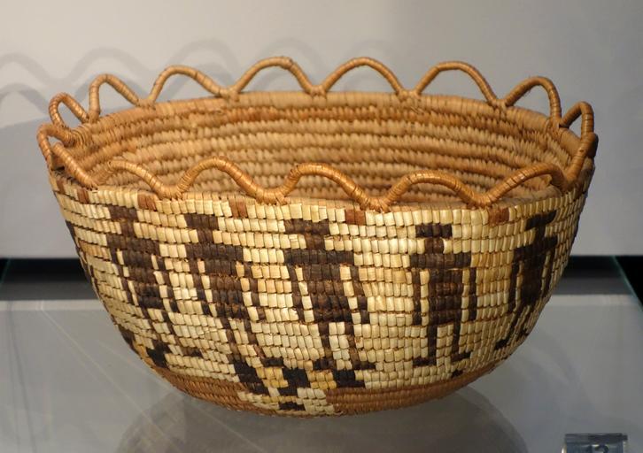 | Keywords: Basket, Yakima people, Washington, late 19th to early 20th century, coiled cedar root and bark, bear grass, horsetail root - Chazen Museum of Art - DSC01865.JPG en Exhibit in the Chazen Museum of Art University of Wisconsin-Madison Madison Wisconsin USA This artwork is old enough so that it is in the public domain Photography was permitted in the museum without restriction 2013-07-21 13 01 12 own Daderot cc-zero Native American baskets in the Chazen Museum of Art Uploaded with UploadWizard Yakama |