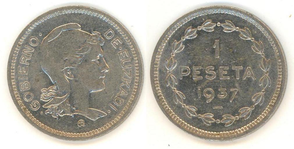 Keywords: Basque country 1 peseta 1937.JPG 1_peseta_de_1937_de_las_provincias_vascongadas Own 2007-02-12 Alfons Åberg Coins of the Second Spanish Republic 1937 1 peseta coins 1937 in Spain 1937 coins History of the Basque Autonomous Community