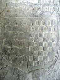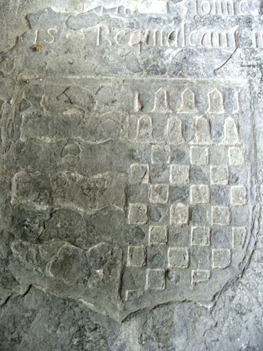 | Keywords: BassetChichesterArmsAtheringtonChurchDevon.JPG en Slate slab top of chest tomb of Sir Arthur Basset 1541-1586 of Umberleigh and his wife Elizabeth Chichester daughter of Sir John Chichester d 1569 of Raleigh showing arms of Basset impaling Chichester own photo own photo Photo 2012 Interior of St Mary's Atherington |