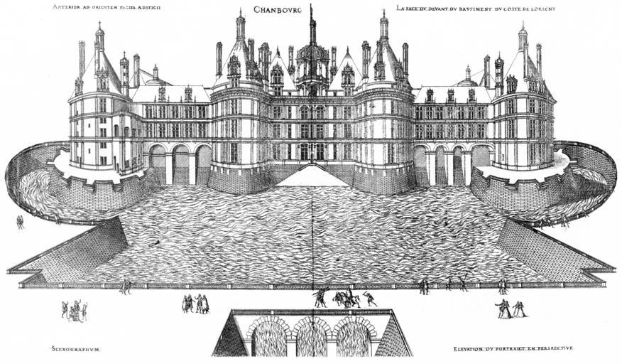 | Keywords: Bastiments v1 (Gregg 1972 p32) - Chambord northwest facade.jpg Engraving from Le premier volume des plus excellents Bastiments de France by Jacques I Androuet du Cerceau showing the northwest facade of the Château de Chambord Scan Androuet Jacques 1576 Le premier volume des plus excellents Bastiments de France Paris Reduced size reprint Gregg International 1972 ISBN 9780576154086 1576 Creator Jacques I Androuet du Cerceau PD-Art-100 Le premier volume des plus excellents Bastiments de France Gregg 1972 reprint Drawings and paintings of the Château de Chambord Castle elevations |