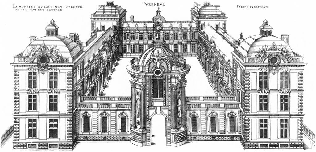 | Keywords: Bastiments v1 (Gregg 1972 p78) - Verneuil bird's-eye view entrance front second design.jpg  Engraving from Le premier volume des plus excellents Bastiments de France by Jacques I Androuet du Cerceau Château de Verneuil-sur-Oise Bird's-eye view of the entrance front second design Scan Androuet Jacques 1576 Le premier volume des plus excellents Bastiments de France Paris Reduced size reprint Gregg International 1972 ISBN 9780576154086 1576 Creator Jacques I Androuet du Cerceau PD-Art-100 Le premier volume des plus excellents Bastiments de France Gregg 1972 reprint Château de Verneuil-sur-Oise Bird's-eye view |