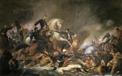 | Keywords: Batalha de Campo Grande - 1871.jpg  Artwork Creator Pedro Américo Batalha de Campo Grande Battle of Campo Grande 1871 Oil on canvas cm 332 530 Institution Museu Imperial http //www dezenovevinte net/bios/bio_pa_arquivos/pa_1871_campogrande jpg Other versions PD-old-100 Herculano Sancho da Silva Pedra Paintings by Pedro Américo Academic paintings in Brazil Paintings in the Museu Imperial War of the Triple Alliance 19th-century paintings of battles History of Brazil 1840-1889 Pedro II Reign 1870s paintings from Brazil Prince Gaston Count of Eu Alfredo d'Escragnolle Taunay 19th-century oil on canvas paintings Night in paintings ImageNote 1 100 131 22 25 620 387 2 Alfredo d'Escragnolle Taunay Viscount of Taunay ImageNoteEnd 1 ImageNote 2 211 75 29 28 620 387 2 Gaston Count of Eu ImageNoteEnd 2 ImageNote 3 515 235 18 20 620 387 2 Pedro Américo self-portrait; the painter did not fight in the war ImageNoteEnd 3 ImageNote 4 503 241 13 15 620 387 2 Aurélio de Figueiredo brother of Pedro Américo ImageNoteEnd 4 ImageNote 5 330 146 24 24 620 387 2 Captain Almeida Castro ImageNoteEnd 5 ImageNote 6 172 138 23 21 620 387 2 Rufino Eneias Gustavo Galvão then Colonel later the Viscount of Maracajú ImageNoteEnd 6 ImageNote 7 540 162 14 14 620 387 2 Colonel Herculano Sancho da Silva Pedra ImageNoteEnd 7 ImageNote 8 63 274 27 24 620 387 2 Captain Arouca ImageNoteEnd 8 ImageNote 9 17 249 30 28 620 387 2 Friar Fidelis d ™Avila ImageNoteEnd 9 ImageNote 10 156 149 15 18 620 387 2 Major Benedicto de Almeida Torres ImageNoteEnd 10 ImageNote 11 18 122 19 22 620 387 2 Captain João Mendes Salgado of the Brazilian Navy ImageNoteEnd 11 ImageNote 12 71 167 16 16 620 387 2 Lieutenant Colonel Carlos de Morais ImageNoteEnd 12 |