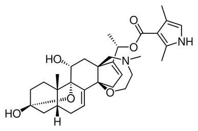 Keywords: Batrachotoxin2.svg Chemical structure of batrachotoxin Selfmade with ChemDraw 2007-02 Calvero PD 114px Batrachotoxin