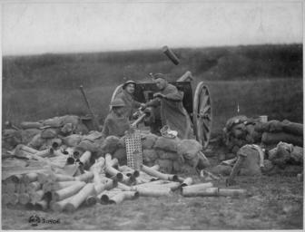 | Keywords: Battery C, 6th Field Artillery, fired the first shot for America on the Lorraine front. A shell case flying through... - NARA - 530744.tif Local identifier 111-SC-20906 Department of Defense Department of the Army Office of the Chief Signal Officer 09/18/1947 - 02/28/1964 Still Picture Records Section Special Media Archives Services Division NWCS-S National Archives at College Park 8601 Adelphi Road College Park MD 20740-6001 1918-09-02 Record group Record Group 111 Records of the Office of the Chief Signal Officer 1860 - 1985 Record group ARC 440 Signal Corps Photographs of American Military Activity compiled 1754 - 1954 Series ARC 530707 Variant control numbers NAIL Control Number NWDNS-111-SC-20906 General notes Use War and Conflict Number 623 when ordering a reproduction or requesting information about this image Scope and content File unit File unit ARC yes other versions File Field-artillery-beaumont-france gif NARA-cooperation PD-USGov Canon de 75 modèle 1897 World War I forces of the United States in France |