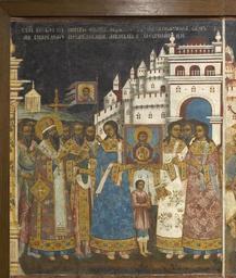 Keywords: Battle between Novgorod and Suzdal (fresco) 01.jpg Ф еска Битва новго одцев с суздальцами 1742 1743 Я ославль Известковый г унт темпе а Из соб ания Госуда ственной Т етьяковской гале еи 1742 1743 Creator Unknown PD-Art Battle between Novgorod and Suzdal fresco GTG Exhibition Sainte Russie Moscow 2011 |
