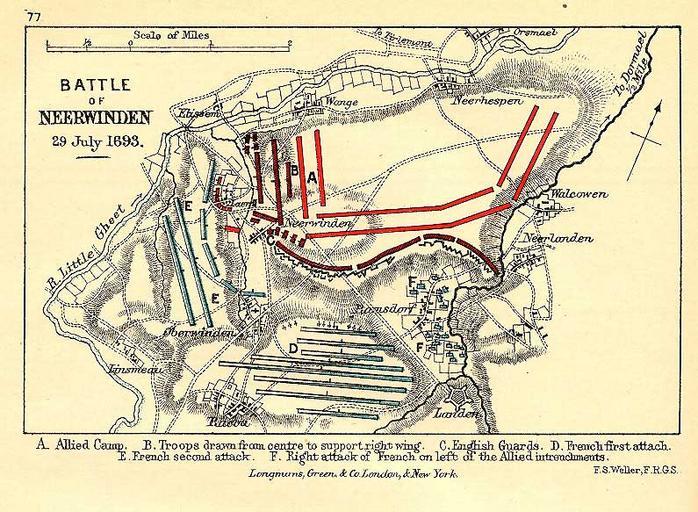 Keywords: Battle of Neerwinden (1693).jpg Map of the Battle of Neerwinden Netherlands 29th July 1693 Victory by the French under command of François-Henri de Montmorency-Luxembourg over the united Netherlands and British armies under the command of en Wilhelm III England William of Orange Also called the Battle at Landen Karte der Schlacht von Neerwinden Niderlanden 29 Juli 1693 Sieg der Franzosen unter dem Marschall de François-Henri de Montmorency-Luxembourg über die verbündeten Holländer und Engländer unter de Wilhelm III England Wilhelm von Oranien Auch Schlacht bei Landen genannt http //www livgenmi com/gardiner77 htm original upload at http //de wikipedia org/wiki/Bild BattleofNeerwinden jpg According to Google-Research made around 1890 Probably public domain / Laut Google-Recherche um 1890 entstanden daher höchstwahrscheinlich PD --Leipnizkeks 08 16 31 Jul 2006 CEST author Anonymous-EU Maps showing 17th-century history Neerwinden Battle Maps of battles Neerwinden 1890 maps Neerwinden Battle Battle of Neerwinden 1693 |