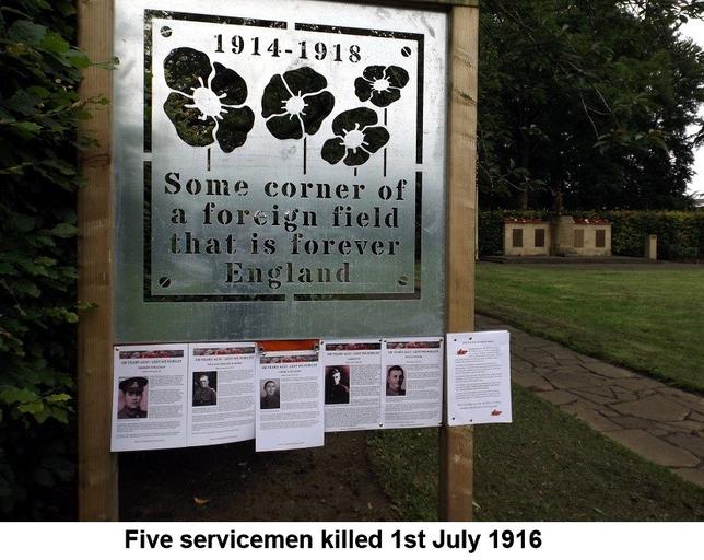 | Keywords: text sign signboard outdoor THE BATTLE OF THE SOMME One hundred ago today, the battle of the Somme began at 7.30a.m. with the shrill cry of officers' whistles. It ended 141 days later on 18th November 1916 among a sea of mud, sleet and snow. By this time over one million British, French and German lives had been lost. The Battle of the Somme is engrained in the hearts of the British public. It wasn't the first battle that involved Kitchener's new army, the volunteers of 1914 and 1915, but it was the first that involved them in such a large scale. One hundred years ago today, the British Army suffered 60,000 casualties, over 19,000 of whom died. All in one day - the worst day in the history of the British Army. One hundred years ago today, the district lost five men on the first day of the Battle: William Barber, Hugh Connor, James Eve, George Gillespie and Herbert Strachan. Over the course of the battle nearly 40 men from the district lost their lives. Many more were wounded or captured. These were ordinary men who fought for the cause they believes in. Their sacrifice and the sacrifices of their families should never be forgotten. Lance Sergeant Hugh Connor (Service no. 10678) served in the 15th (Service) Battalion (1st Salford), The Lancashire Fusiliers, 96th Brigade, 32nd Division. The battalion was more famously known as the 1st Salford 'Pals' Private Herbert Strachan (Service no 11254) served in 5 Platoon, 'B' (Eccles) Company of the 16th (Service) Battalion (2nd Salford). The Lancashire Fusiliers, 96th Brigade, 32nd Division. The Battalion was one of the famous 'Salford Pals' Battalions and 'B' Company consisted men mainly from Eccles and surrounding districts. Private William Barber (Service no. 17287) served with the 20th (Service) Battalion (5th City), The Manchester Regiment, 22nd Brigade, 7th Division. The Battalion was raised in Manchester on 8th November 1914 and had basic training at Morecambe before moving to Grantham in April 1915 and then onto Lark Hill for further training. He served with 5 Platoon, 'B' Company. Private George W.T. Gillespie (Service no. 11905) served with the 1st Battalion, The Border Regiment, 87th Brigade, 29th Division. Private James Eve (service no. 18232) served with the 15th (Service) Battalion (1st Edinburgh), The Royal Scots, 101st Brigade, 34th Division. IRLAM & CADISHEAD WW ASSOCIATION THE BATTLE OF THE SOMME One hundred ago today, the battle of the Somme began at 7.30a.m. with the shrill cry of officers' whistles. It ended 141 days later on 18th November 1916 among a sea of mud, sleet and snow. By this time over one million British, French and German lives had been lost. The Battle of the Somme is engrained in the hearts of the British public. It wasn't the first battle that involved Kitchener's new army, the volunteers of 1914 and 1915, but it was the first that involved them in such a large scale. One hundred years ago today, the British Army suffered 60,000 casualties, over 19,000 of whom died. All in one day - the worst day in the history of the British Army. One hundred years ago today, the district lost five men on the first day of the Battle: William Barber, Hugh Connor, James Eve, George Gillespie and Herbert Strachan. Over the course of the battle nearly 40 men from the district lost their lives. Many more were wounded or captured. These were ordinary men who fought for the cause they believes in. Their sacrifice and the sacrifices of their families should never be forgotten. Lance Sergeant Hugh Connor (Service no. 10678) served in the 15th (Service) Battalion (1st Salford), The Lancashire Fusiliers, 96th Brigade, 32nd Division. The battalion was more famously known as the 1st Salford 'Pals' Private Herbert Strachan (Service no 11254) served in 5 Platoon, 'B' (Eccles) Company of the 16th (Service) Battalion (2nd Salford). The Lancashire Fusiliers, 96th Brigade, 32nd Division. The Battalion was one of the famous 'Salford Pals' Battalions and 'B' Company consisted men mainly from Eccles and surrounding districts. Private William Barber (Service no. 17287) served with the 20th (Service) Battalion (5th City), The Manchester Regiment, 22nd Brigade, 7th Division. The Battalion was raised in Manchester on 8th November 1914 and had basic training at Morecambe before moving to Grantham in April 1915 and then onto Lark Hill for further training. He served with 5 Platoon, 'B' Company. Private George W.T. Gillespie (Service no. 11905) served with the 1st Battalion, The Border Regiment, 87th Brigade, 29th Division. Private James Eve (service no. 18232) served with the 15th (Service) Battalion (1st Edinburgh), The Royal Scots, 101st Brigade, 34th Division. IRLAM & CADISHEAD WW ASSOCIATION |