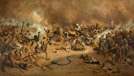 Keywords: Battle of Tofrek.jpg en The battle of Tofrek Oil on Canvas The Rifles Berkshire and Wilshire Museum fr La bataille de Tofrek 22 mars 1885 - guerre des Mahdistes Huile sur toile The Rifles Berkshire and Wiltshire Museum http //www bbc co uk/arts/yourpaintings/paintings/mcneills-zareba-tofrek-22-march-1885-64950 Creator Charles Edwin Fripp before 1906 Charles Edwin Fripp Battles of the Mahdist War PD-old-100 |