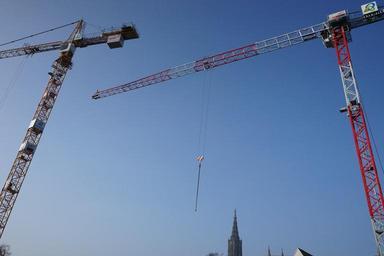 Keywords: baukran crane build site sky construction work lattice boom crane crane boom boom white red