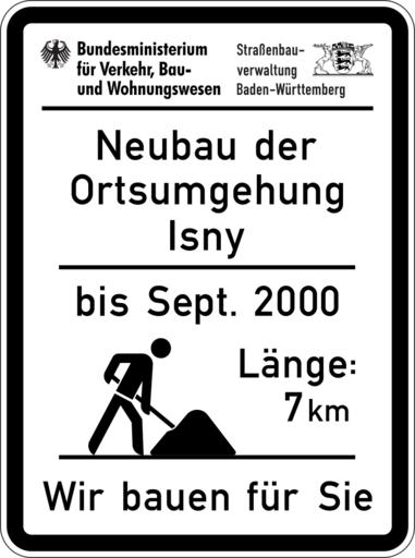 Keywords: Baustelleninformationsschild Bundesstraße, BASt, November 1998.svg de Baustelleninformationsschild für Bundesstraßen Entsprechend dem Allgemeinen Rundschreiben Straßenbau Nr 39/1998 vom 12 Oktober 1998 StB 28/38 59 05/36 Va 98 und der Verkündigung im Verkehrsblatt vom 12 November 1998 Diese Verkündigung trat am 12 November 1998 in Kraft Allgemeinen Rundschreiben Straßenbau Nr 39/1998 Verkehrsblatt 23 vom 12 November 1998 Bundesanstalt für Straßenwesen BASt 12 November 1998 + Signs User Mediatus/no-new-version PD-GermanGov Cc-zero Diagrams of construction road signs of Germany Roadworks signs Diagrams of information road signs of Germany |