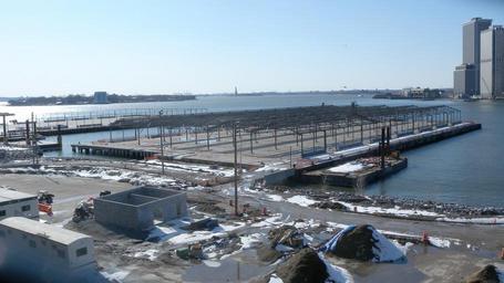 Keywords: BB Park Pier 5 sun jeh.JPG en Looking west from Promenade at Pier 5 of Brooklyn Bridge Park its maritime buildings stripped of their former blue walls on a sunny afternoon One New York Plaza background right; Governors Island background left Own Jim henderson 2010-02-21 40 41 48 2 N 73 59 51 5 W heading W Construction sites in New York Views from Brooklyn Heights Promenade Brooklyn Bridge Park cc-zero |