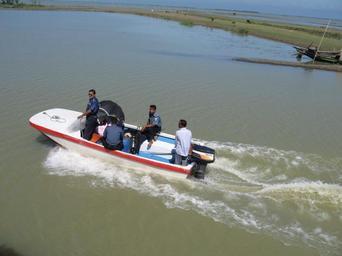 Keywords: BD Surma 18.jpg A police patrol speed boat in the haor region Own 2007-10-30 P K Niyogi Sunamganj District Police boats Boats in Bangladesh Surma River