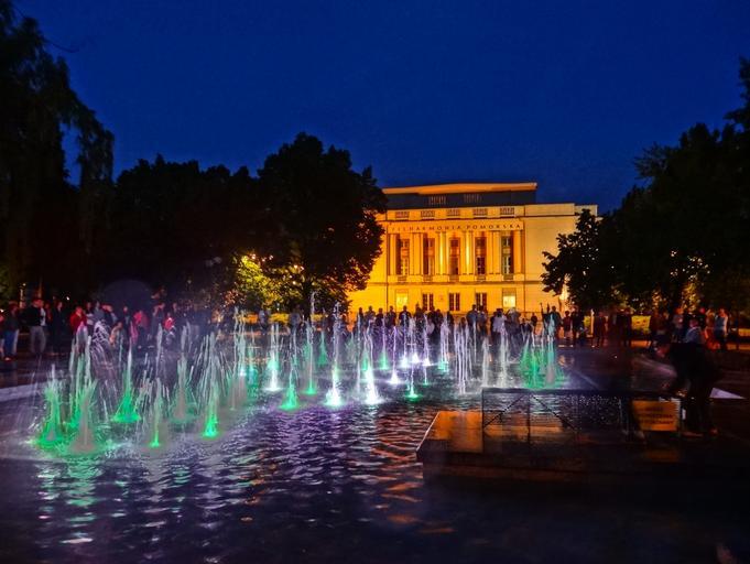 Keywords: Bdg FilharmoniaPomorska fountain 13 5-2014.jpg pl Fontanna przed budynkiem Filharmonii Pomorskiej im Ignacego Jana Paderewskiego w Bydgoszczy przebudowana w 2014 r Dysponuje podświetlanymi dyszami wodnymi sterowanymi elektronicznie np w rytm muzyki 2014-05-24 21 43 40 own Pit1233 53 129426388889 18 009461388889 cc-zero Philharmonic Fountain in Bydgoszcz at night Uploaded with UploadWizard Photographs taken on 2014-05-24 |