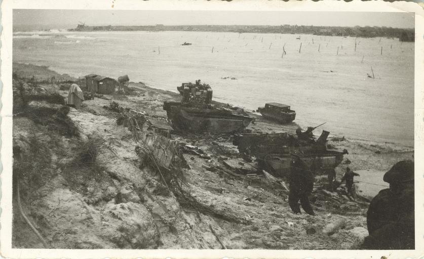| Keywords: world war two worldwartwo second world war secondworldwar wwii tanks netherlands scheldt landing vehicle tracked landingvehicletracked lvt amtrac photo border monochrome outdoor The beach on Walcheren Island during the Battle of the Scheldt. From the Donald Carson fonds, PR2011.0001/4. The beach on Walcheren Island during the Battle of the Scheldt. From the Donald Carson fonds, PR2011.0001/4. | ||||