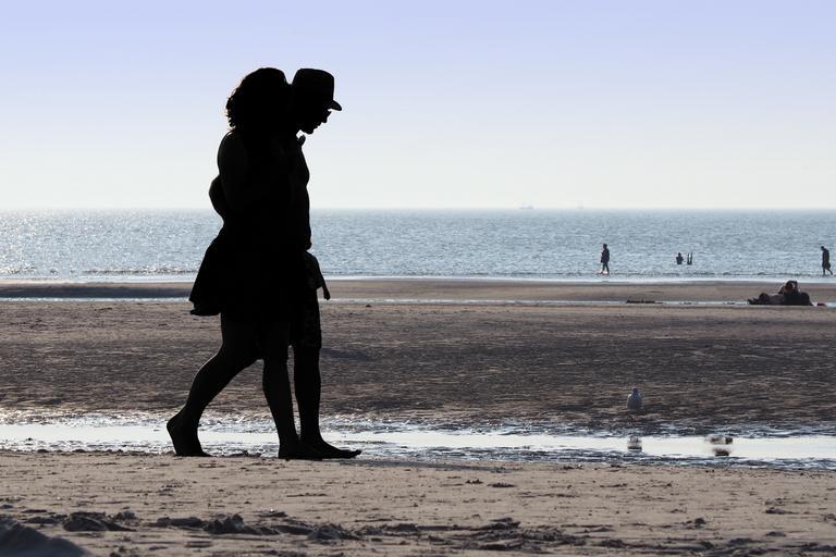 Keywords: beach back light human coast water sea mood north sea sand beach st peter ording nordfriesland romantic